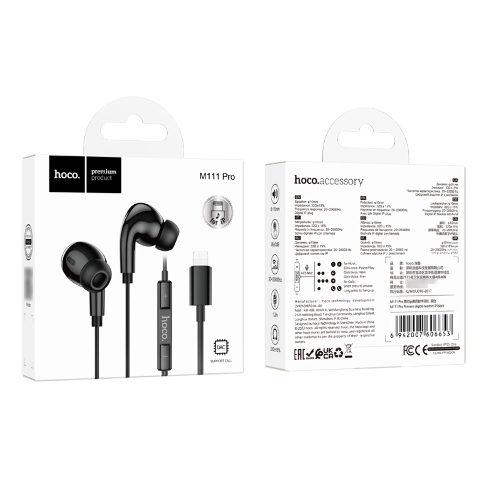 Навушники вакуумні Hoco M111 Pro Lightning у чорному кольорі - це стильне та функціональне рішення для вашого аудіодосвіду.