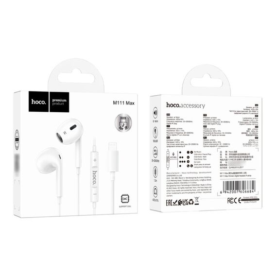 Навушники вкладки Hoco M111 Max Lightning у білому кольорі - це стильне та функціональне рішення для вашого аудіодосліду.