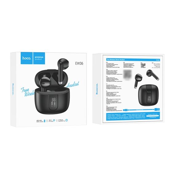 Бездротові вкладки Hoco EW36 TWS у чорному кольорі - це стильне та зручне рішення для прослуховування музики без зайвих дротів.