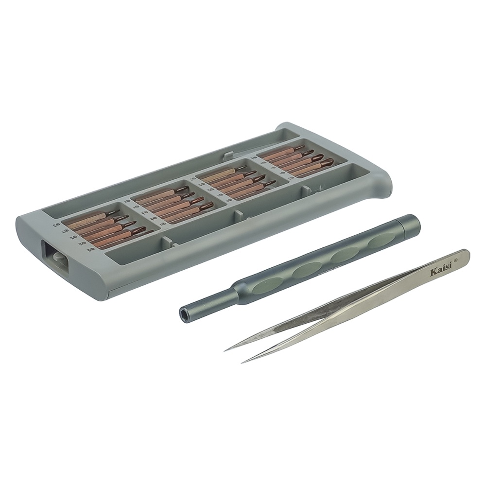 Набір інструментів Kaisi K-3022B з інструментальної сталі S2 (ручка, 20 біт, пінцет)