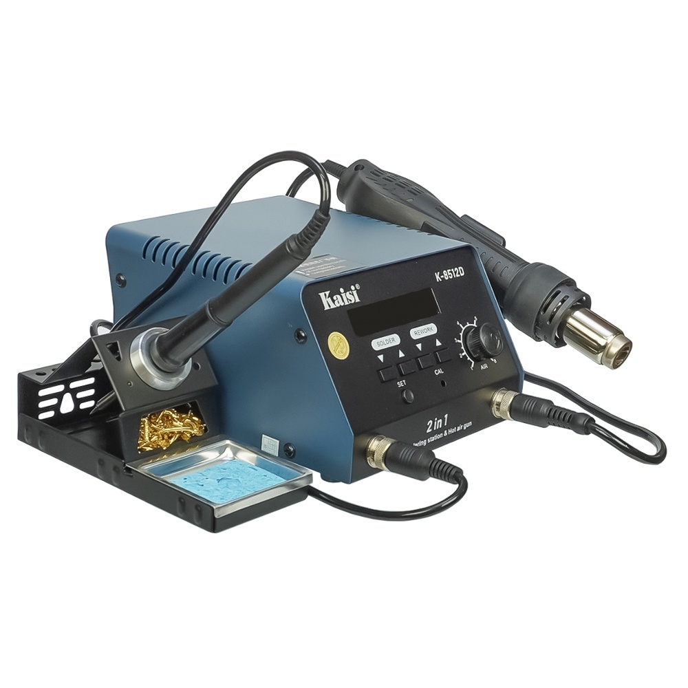 Паяльна станція прецизійна Kaisi K8512D, фен, паяльник T12, цифрова індикація- це два незамінні інструменти в одному: паяльна станція і фен. Призначена для виконання тонких і складних паяльних робіт, таких як паяння мікросхем, електронних SMD-компонентів, дротів і інших дрібних елементів. Паяльні станції це ідеальне обладнання для сервісних центрів і майстерень, лабораторій, дослідницьких і навчальних закладів, а також для любителів і професіоналів, широко застосовуються у виготовленні і ремонті різноманітної електроніки: телефонів і планшетів, комп'ютерів і телевізорів і багато іншого.