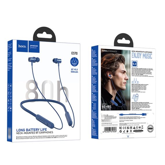 Навушники бездротові вакуумні Hoco ES70 у синьому кольорі - це стильне та зручне рішення для вашого прослуховування музики або дзвінків у будь-який час дня.
