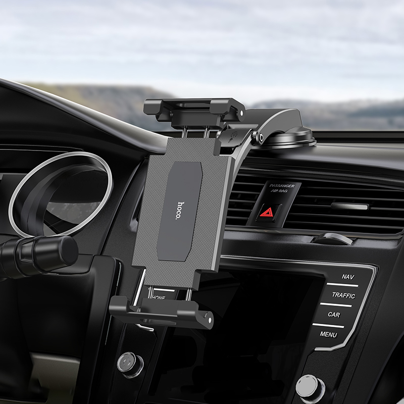 Автотримач Hoco DCA27 у чорному кольорі - це надійний пристрій для кріплення планшета або великого смартфона у вашому автомобілі.