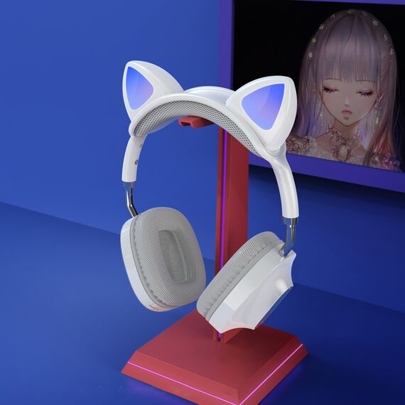 Бездротові навушники Hoco ESD13 Skill Cat накладні з вушками та LED підсвічуванням white