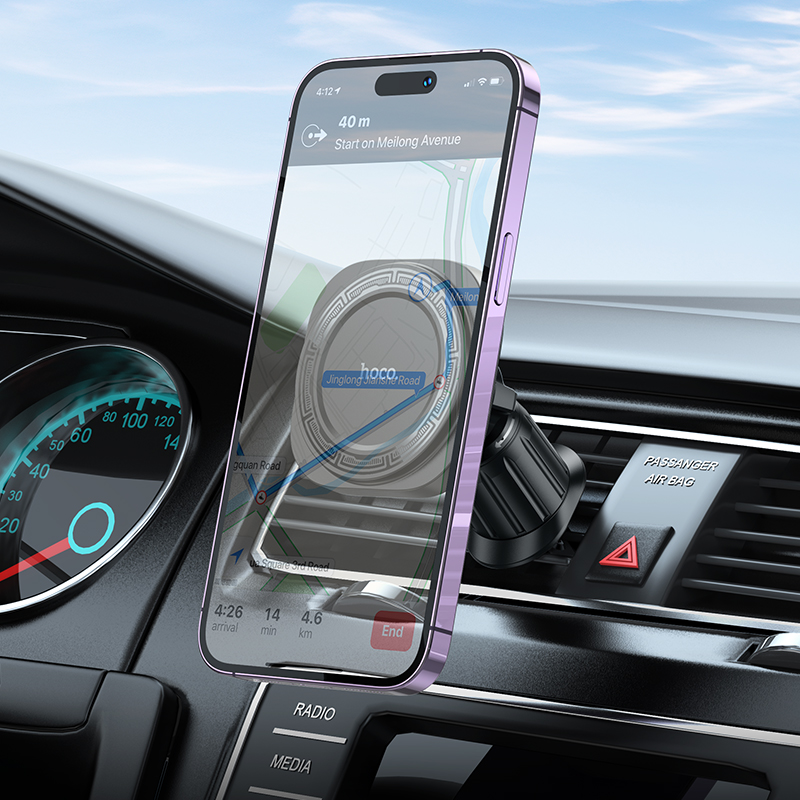Автотримач Hoco H28 у чорному кольорі - це компактний і надійний пристрій для встановлення вашого мобільного телефону в автомобілі.