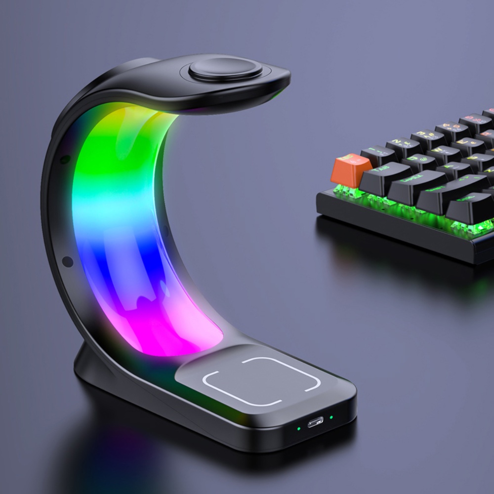 Бездротова док-станція 3в1 T17 в чорному кольорі - це ідеальне рішення для зарядки ваших пристроїв. Вона підтримує потужність до 15W і підходить для смартфонів, бездротових наушників та смарт-годинників. Зручний і компактний дизайн дозволяє легко використовувати пристрій в будь-якому місці.