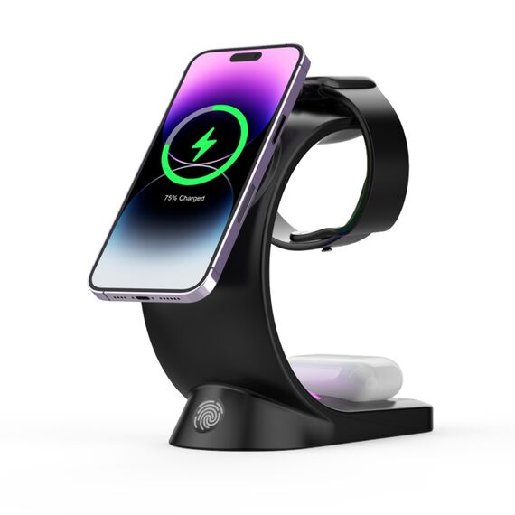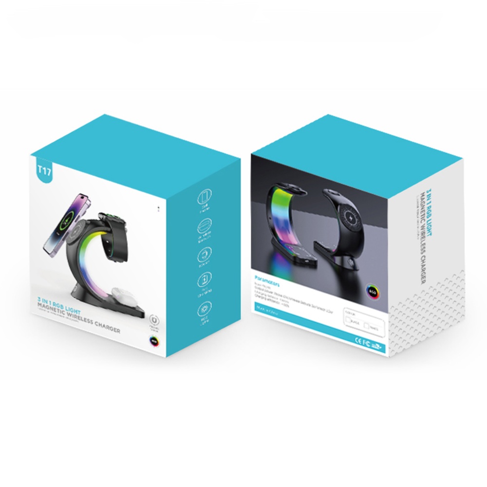 Бездротова док-станція 3в1 T17 3in1 15W+5W+3.5W чорна