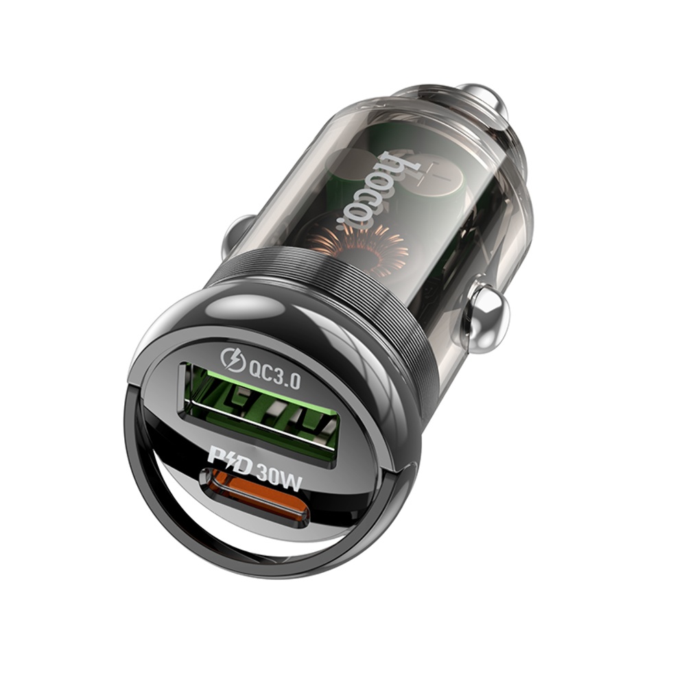 Автомобільний зарядний пристрій Hoco Z53A USB/ Type-C PD 30W QC transparent black