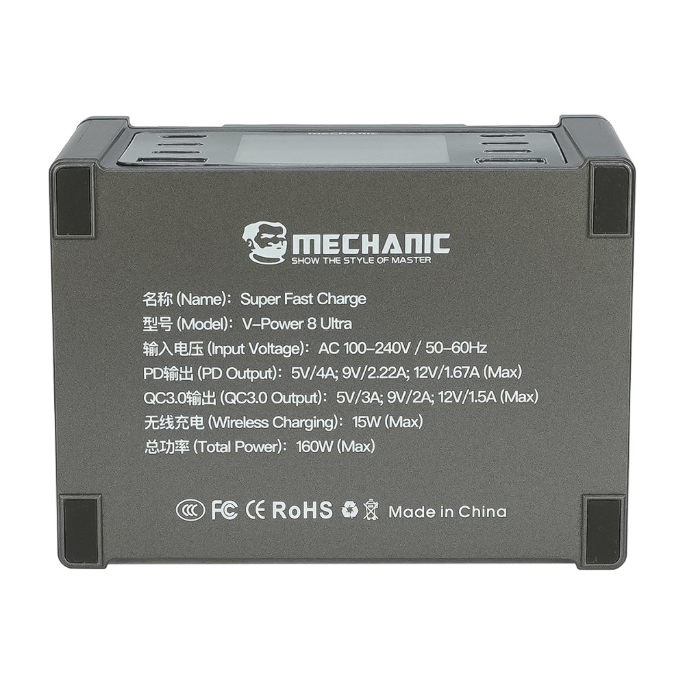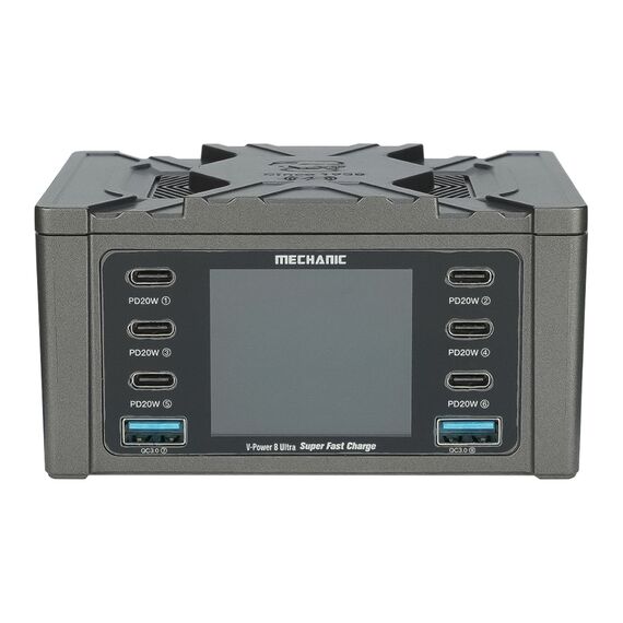 Зарядна станція з індикацією параметрів заряджання Mechanic V-Power 8 Ultra 160W (6 Type C - PD 20W/2 USB QC 3A/Wireless charging 15W)
