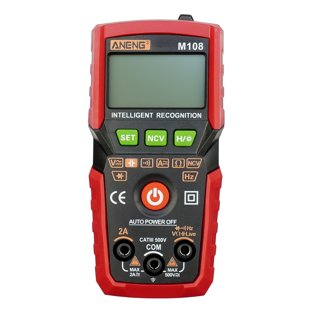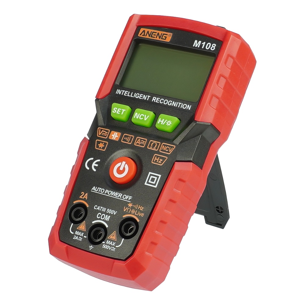 Мультиметр цифровий Aneng M108 з автовизначенням та детектором прихованої проводки - це компактний та зручний прилад для виконання різних вимірювань. Він підтримує вимірювання змінного та постійного струму до 2 А, а також має функцію підсвічування, що дозволяє працювати в умовах з поганим освітленням. Модель оснащена функціями TRUE RMS для точних вимірювань та NCV для безконтактного визначення напруги. Aneng M108 — надійний вибір для фахівців та домашніх майстрів, які шукають точний та багатофункціональний мультиметр.