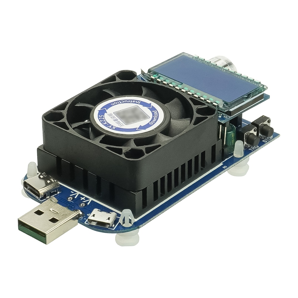Тестер зарядних пристроїв XY-KZ25 з РК дисплеєм, регульованим навантаженням та активним охолодженням (25W, 4A)