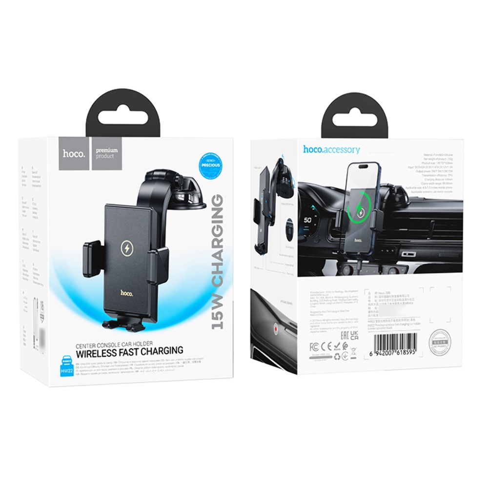 Автотримач Hoco HW22 з функцією бездротової зарядки black