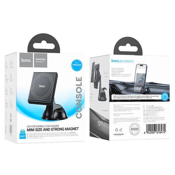 Автотримач Hoco H47 магнітний у чорному кольорі є зручним пристроєм для встановлення мобільного телефону в автомобілі. Він забезпечує надійне кріплення та зручний доступ до пристрою під час поїздок.