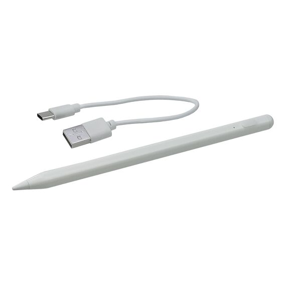 Стилус ємнісний, високоточний, активний JT-18 з вбудованою батареєю, алюмінієвий, білий, з сенсорною кнопкою Увімк./ Вимк.