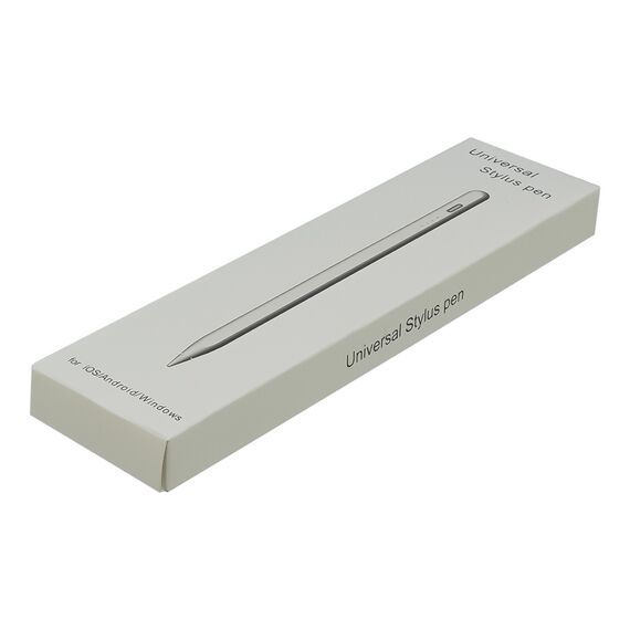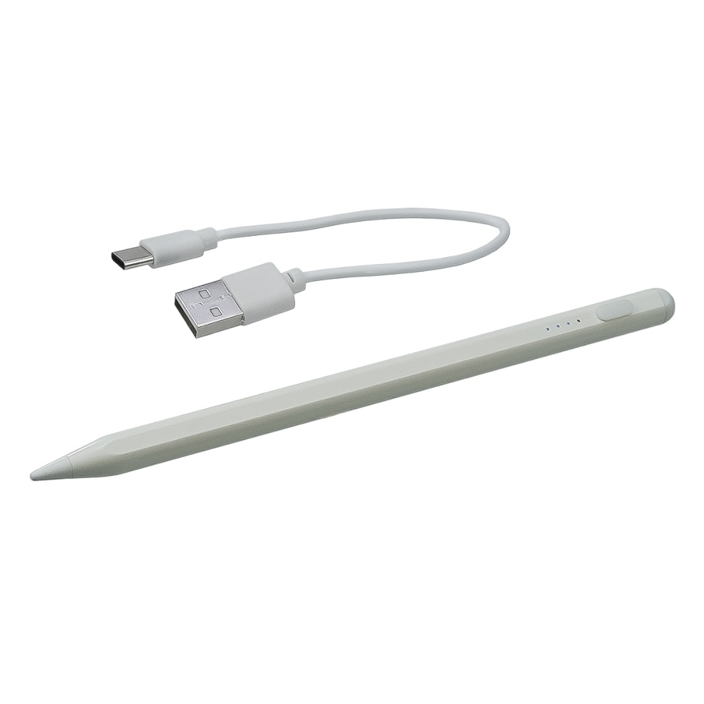 Стилус ємнісний, високоточний, активний з вбудованою батареєю, алюмінієвий, зі світлодіодною індикацією, білий, з сенсорною кнопкою Увімк./ Вимк.