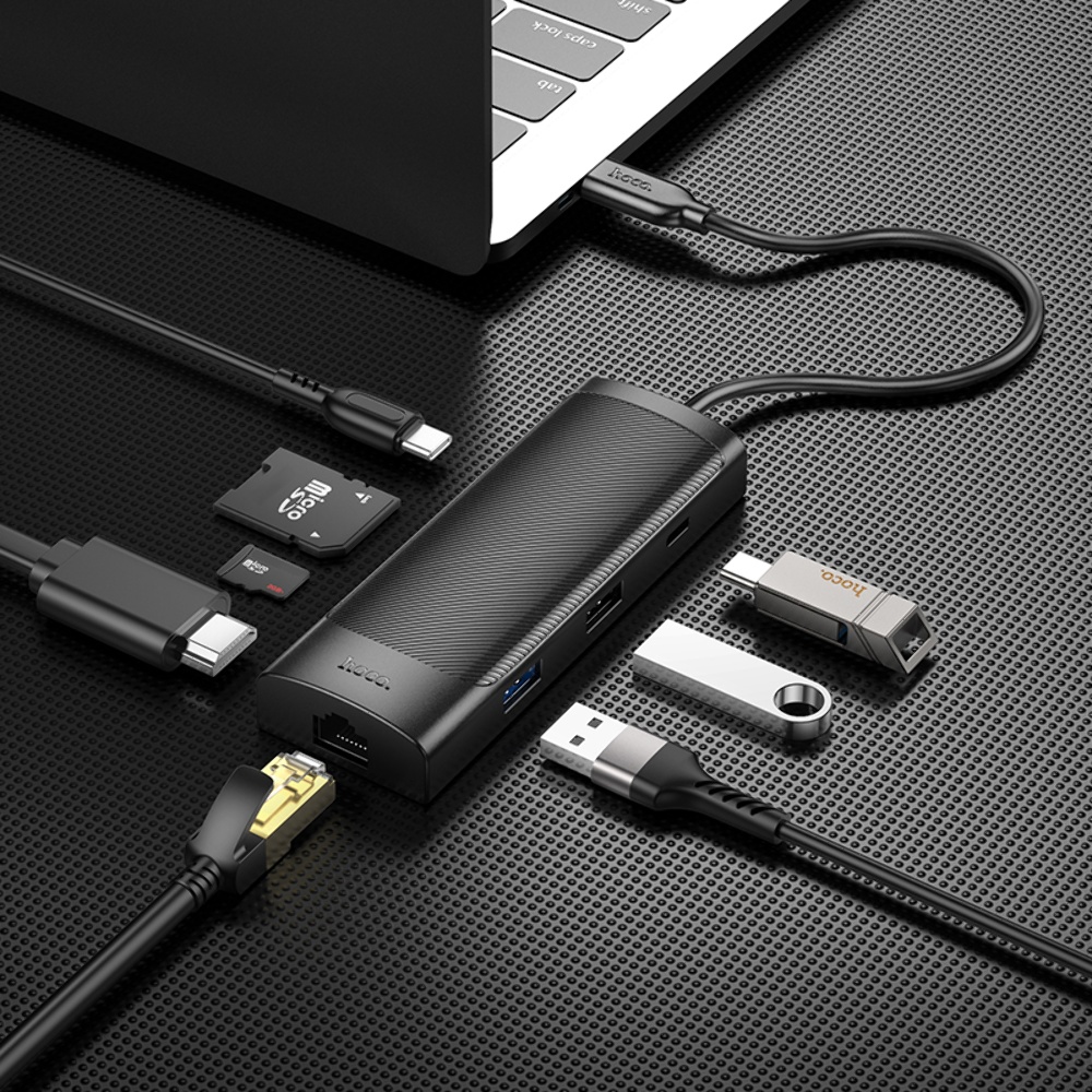 Адаптер перехідник Hoco HB44 8в1 Type-C converter black