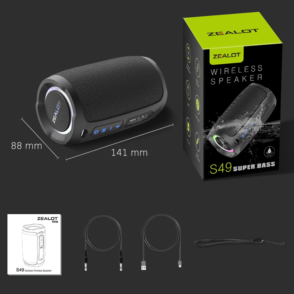 Портативна Bluetooth колонка ZEALOT S49 в чорному кольорі є стильним і потужним аудіопристроєм з різними можливостями підключення для якісного звучання музики в будь-який час.
