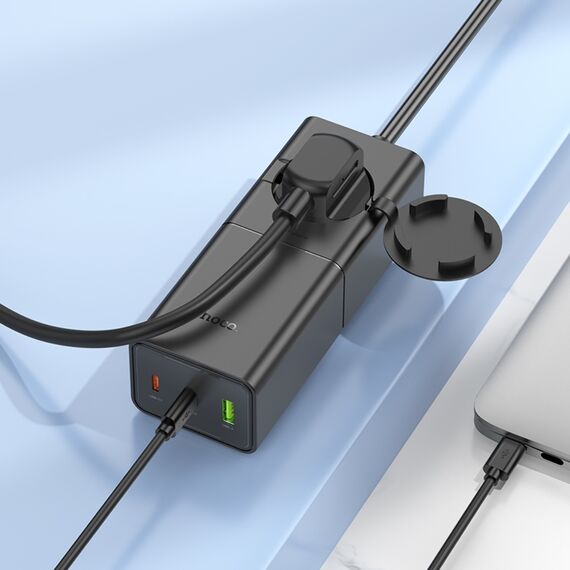 Мережевий зарядний пристрій подовжувач Hoco NS4 USB/2 Type-C PD 65W black – це потужний та універсальний пристрій, який забезпечить швидку та безпечну зарядку ваших пристроїв.