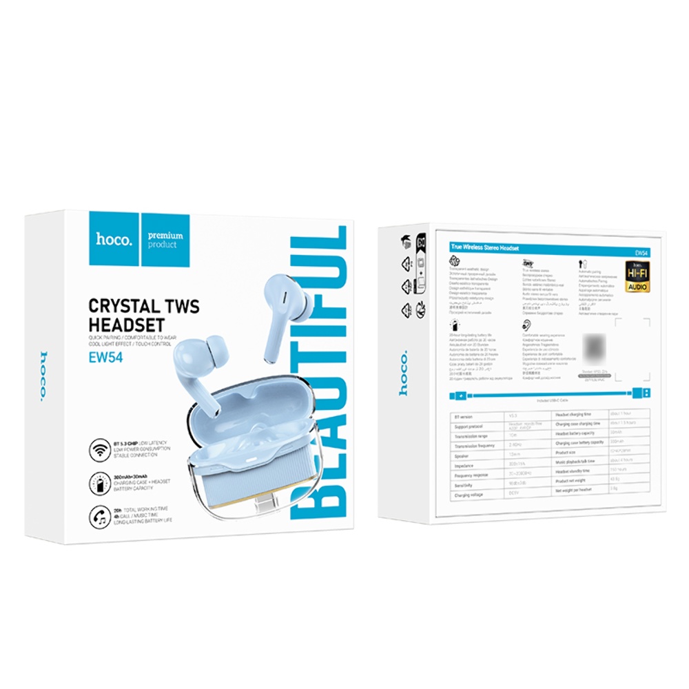 Бездротові TWS навушники Hoco EW54 в синьому кольорі забезпечують відмінну якість звуку та зручність використання. Вони оснащені Bluetooth 5.3 і підтримують швидкий зв'язок з пристроями. Час роботи навушників складає 4 години, а зарядний кейс має ємність 300 мАч.
