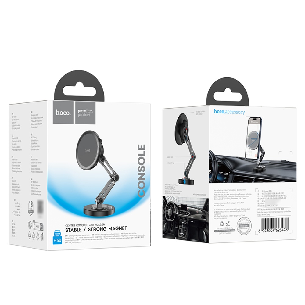 Магнітний автотримач Hoco H50 у кольорі black metal gray - це стильне та зручне рішення для кріплення смартфона в автомобілі. Пристрій кріпиться на центральну консоль або задню частину дисплея нових автомобілів з електроприводом, що робить його універсальним аксесуаром.