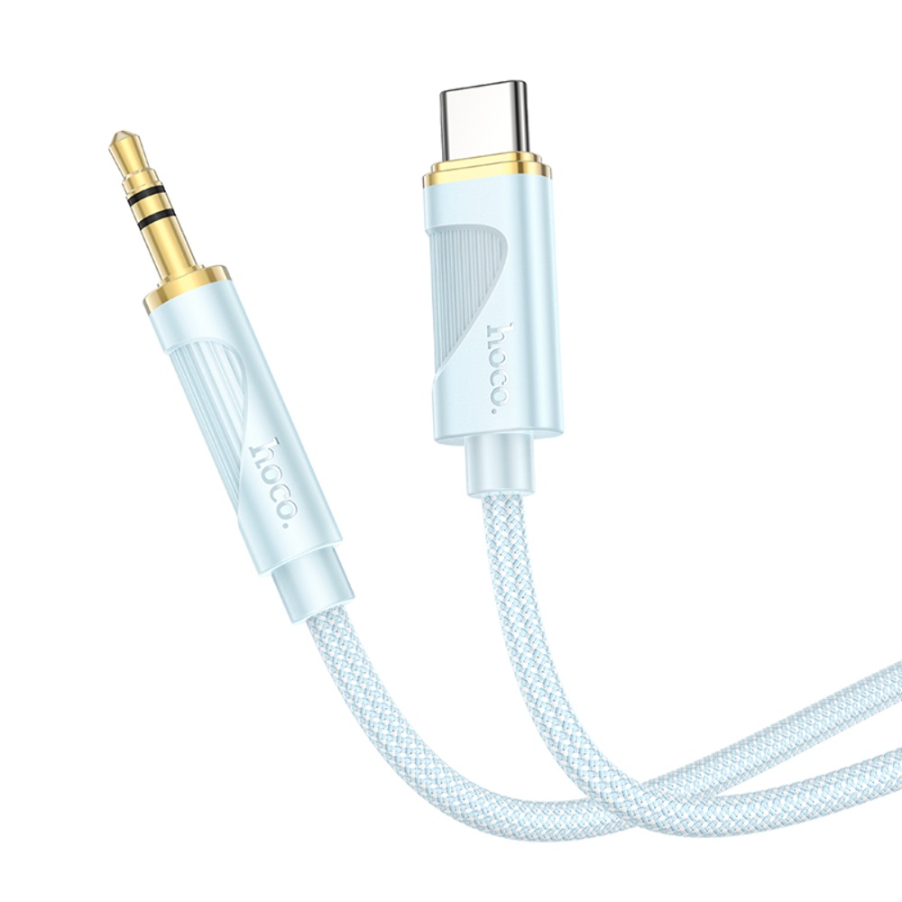 AUX кабель Hoco UPA30 Type-C to Jack 3.5 довжиною 1 метр у синьому кольорі призначений для підключення пристроїв з Type-C роз'ємом до аудіопристроїв з роз'ємом 3.5 мм.