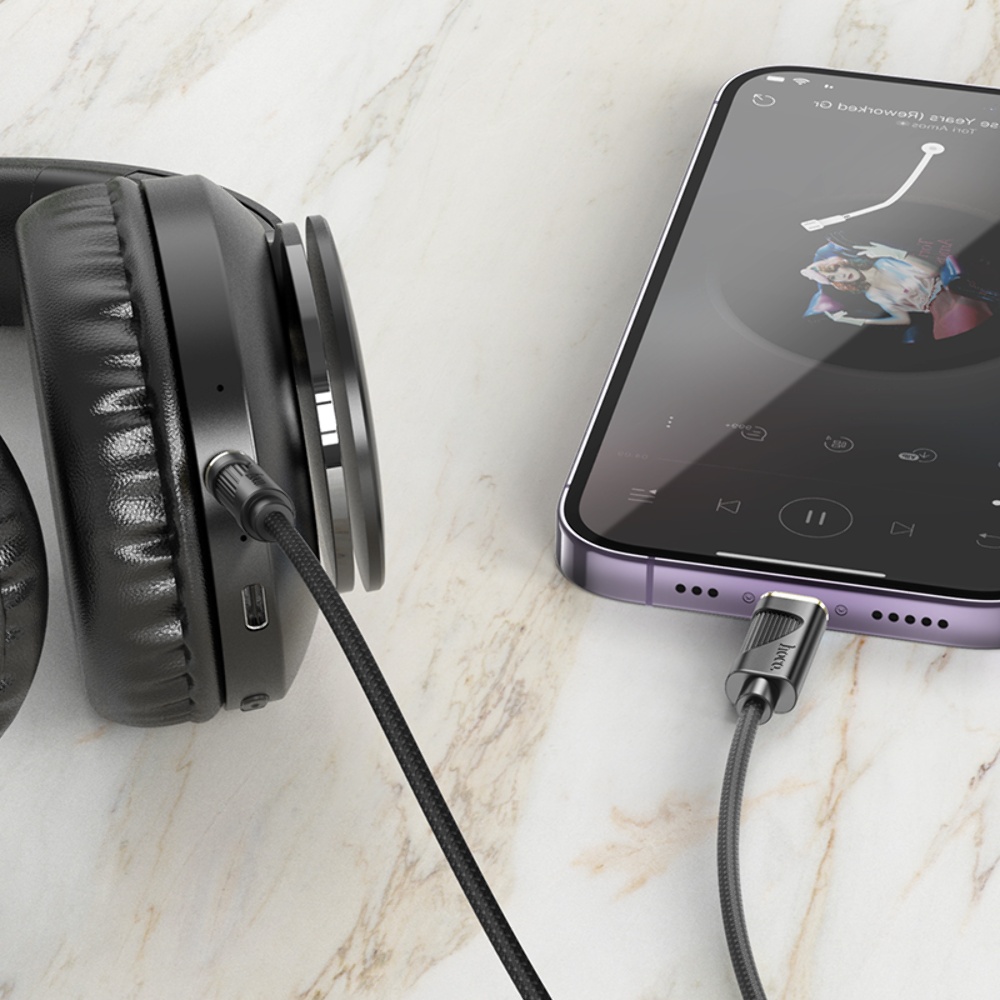 AUX кабель Hoco UPA30 Lightning to Jack 3.5 довжиною 1 метр у чорному кольорі – це ідеальне рішення для підключення пристроїв з Lightning роз'ємом до аудіопристроїв з 3.5 мм роз'ємом, таким як навушники або колонки.