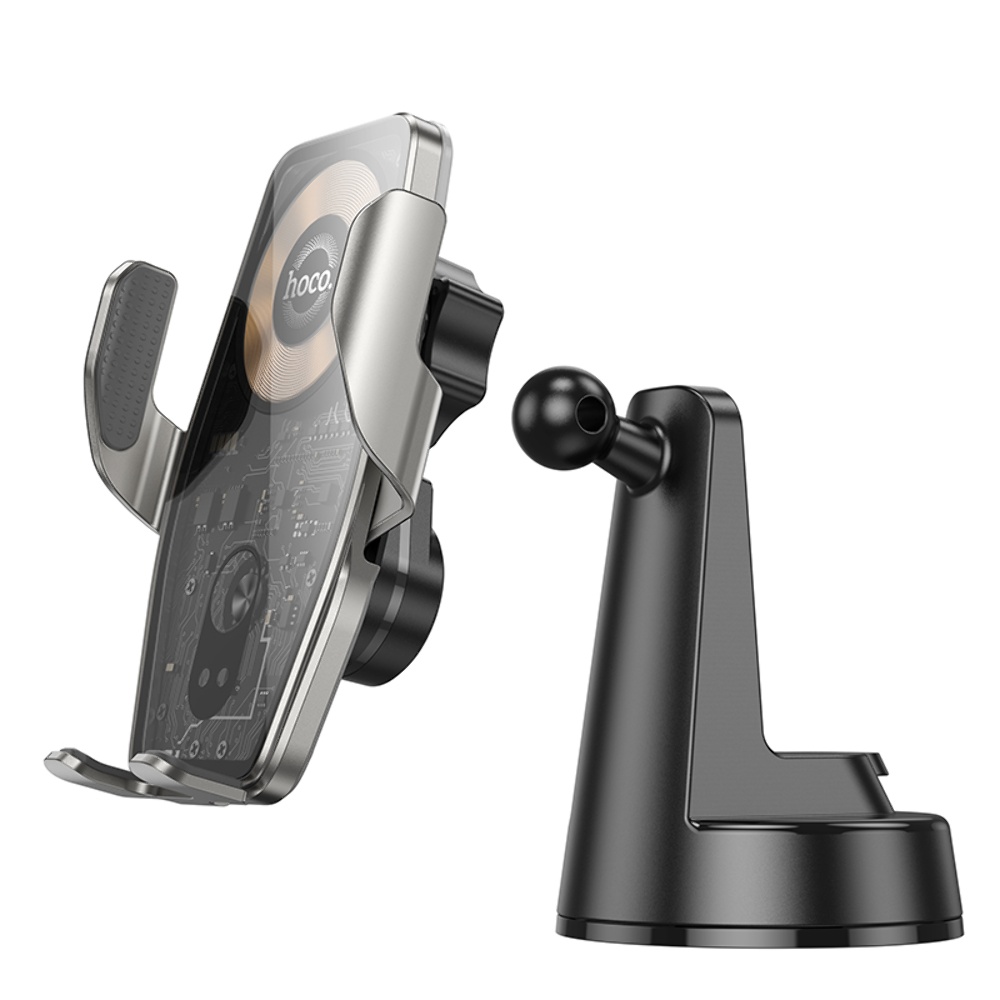 Автотримач Hoco HW27 з бездротовою зарядкою black metal gray