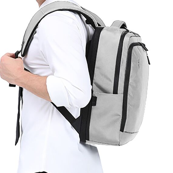 Рюкзак для ноутбука Aoking SN2107 сірого кольору — це багатофункціональний та стильний аксесуар, що ідеально підходить для повсякденного використання або робочих поїздок. Завдяки м'якій бічній ручці, виготовленій з поліестеру з м'якою підкладкою, рюкзак легко трансформується в портфель, що додає комфорту при його використанні. Основне відділення оснащене м'якою кишенею для ноутбука, яка надійно захищає пристрій від ударів та падінь.
