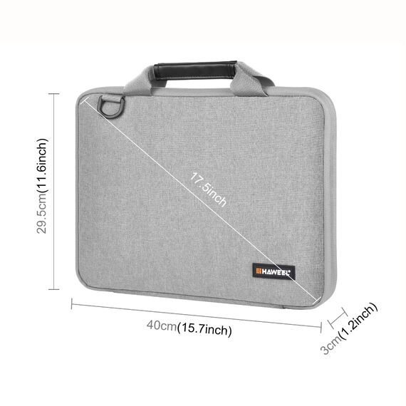 Сумка для ноутбука HAWEEL HWL2169 15-16"" сіра - це ідеальний вибір для тих, хто шукає стильний та надійний захист для свого пристрою. Зовнішній шар виконаний з високоякісної водонепроникної поліестерової тканини, а внутрішня підкладка з м'якого оксамиту та шару перламутрової бавовни забезпечує максимальний захист від ударів, пилу та вологи. Ультратонкий та легкий дизайн робить цю сумку зручною як для повсякденного використання, так і для подорожей.