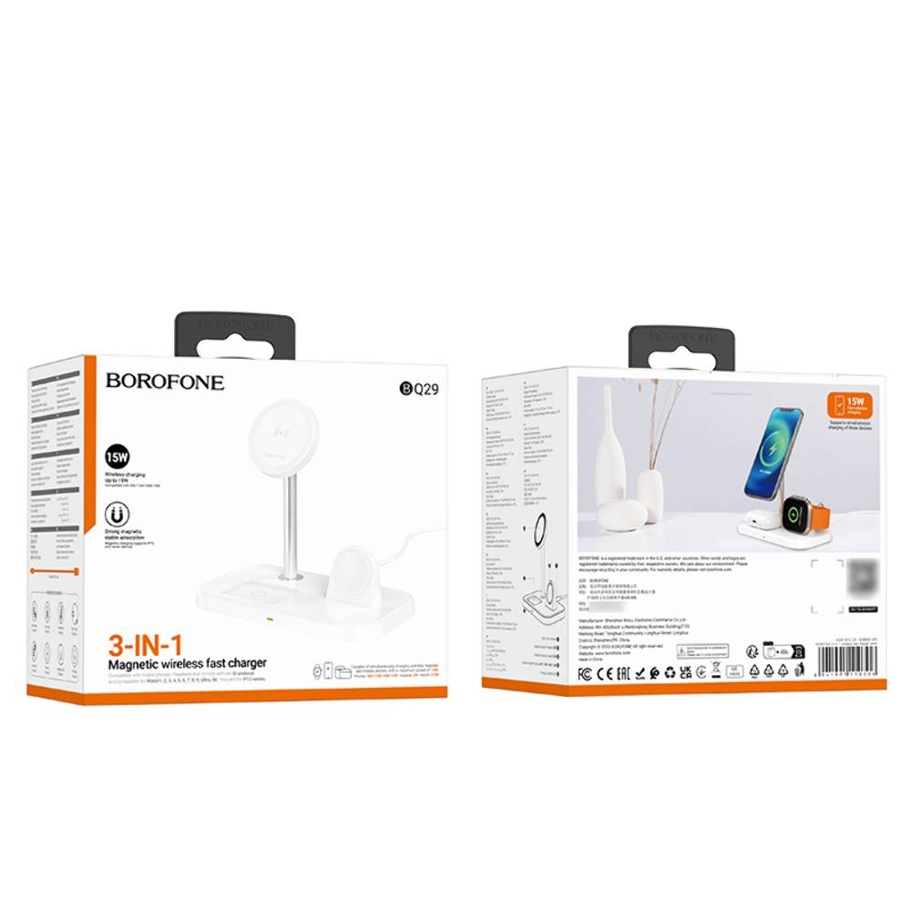 Бездротовий зарядний пристрій Borofone BQ29 3в1 white