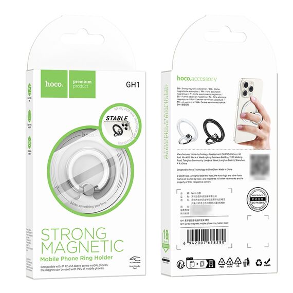 Магнітне кільце тримач для телефону Hoco GH1 магнітний white