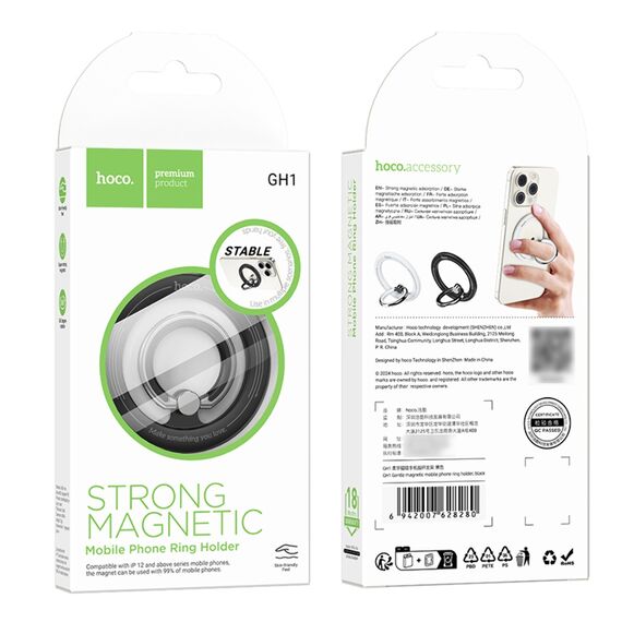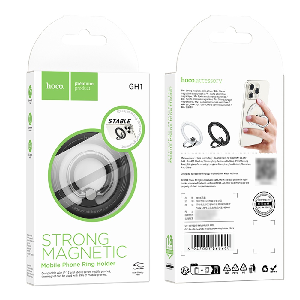 Магнітне кільце тримач для телефону Hoco GH1 магнітний black – це сучасне рішення для надійного кріплення вашого мобільного пристрою. Виготовлений із міцних матеріалів, цей аксесуар забезпечує надійну фіксацію, дозволяючи зручно використовувати телефон у будь-якому положенні.