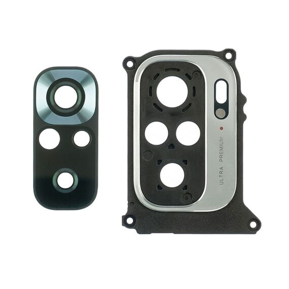 Стекло камеры для Xiaomi Redmi Note 10/ Note 10s с серебристой рамкой