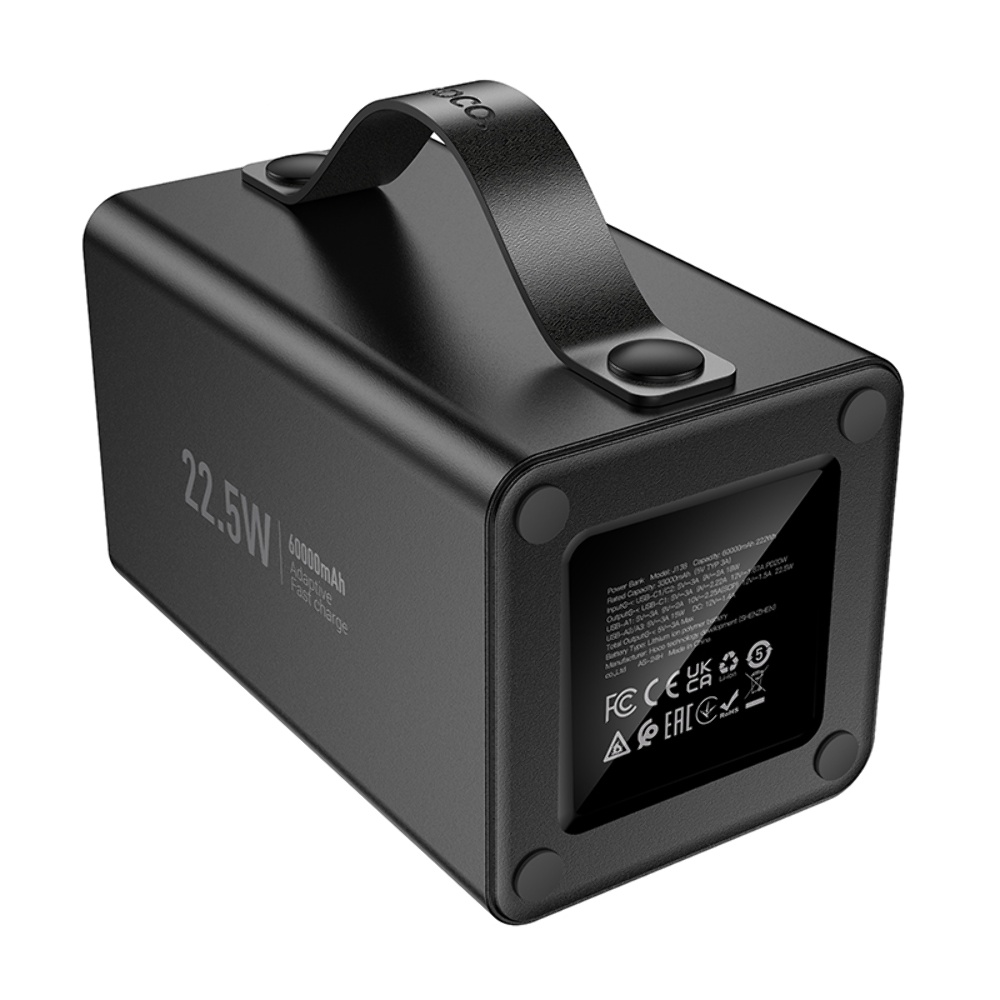 Power bank Hoco J138 60000mAh 22.5W PD 20W з дисплеєм black - потужний і надійний пристрій, що забезпечує тривале енергопостачання для ваших гаджетів. З ємністю 60000mAh та підтримкою швидкої зарядки потужністю до 22,5W, це ідеальний вибір для тих, хто потребує тривалої автономності. Зручний LED-дисплей дозволяє контролювати рівень заряду, а міцний корпус із вогнестійкого ABS-пластику забезпечує довговічність та безпеку.