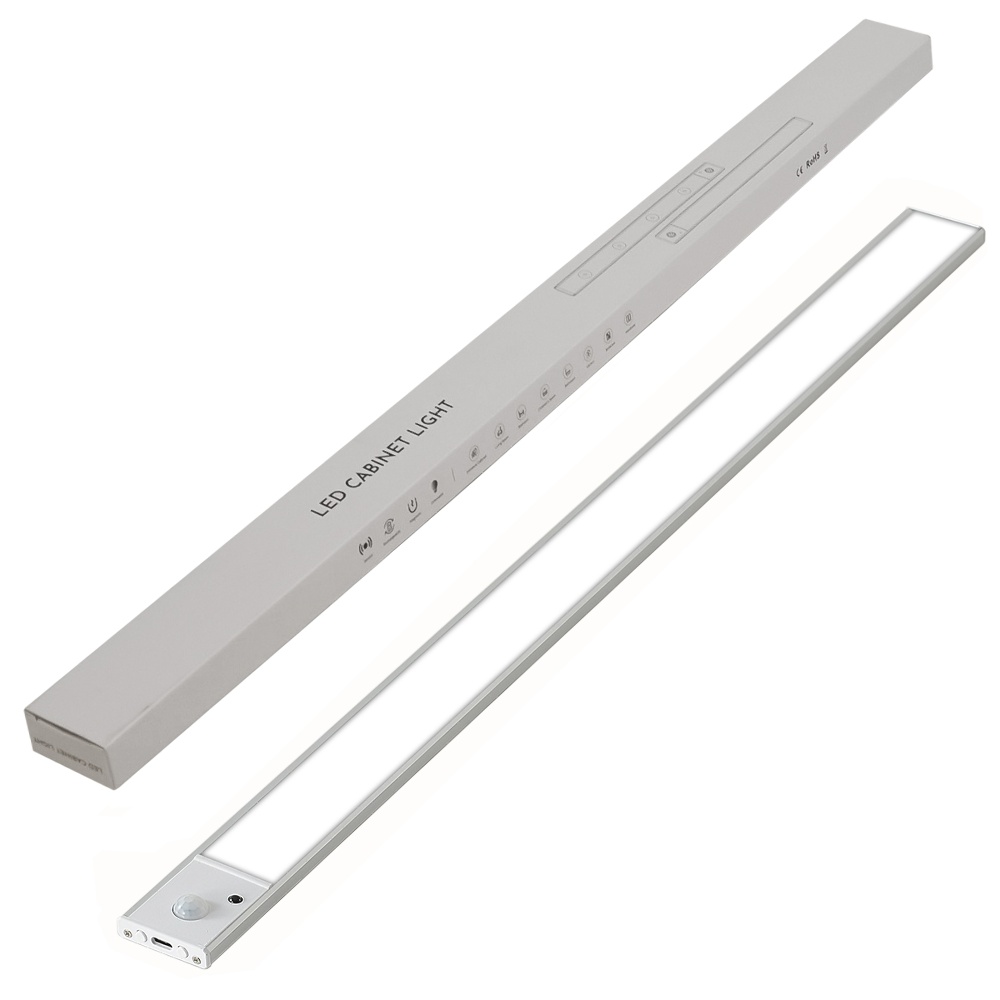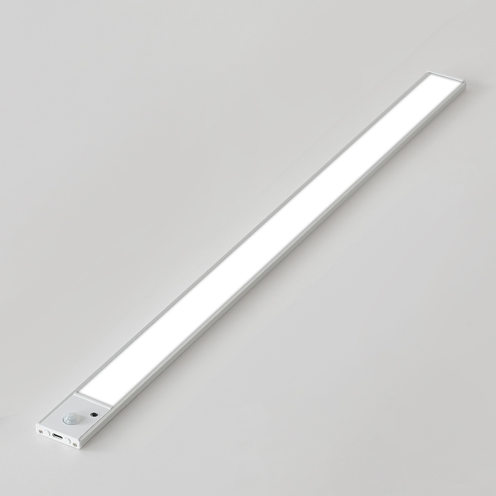 LED світильник 60-3S з датчиком руху та освітленості, акумулятором, в алюмінієвому корп. 60 см, 3.5W срібляста