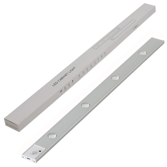 LED світильник cat's eye 60-2S з датчиком руху та освітленості, акумулятором, в алюмінієвому корп. 60 см, 2W срібляста