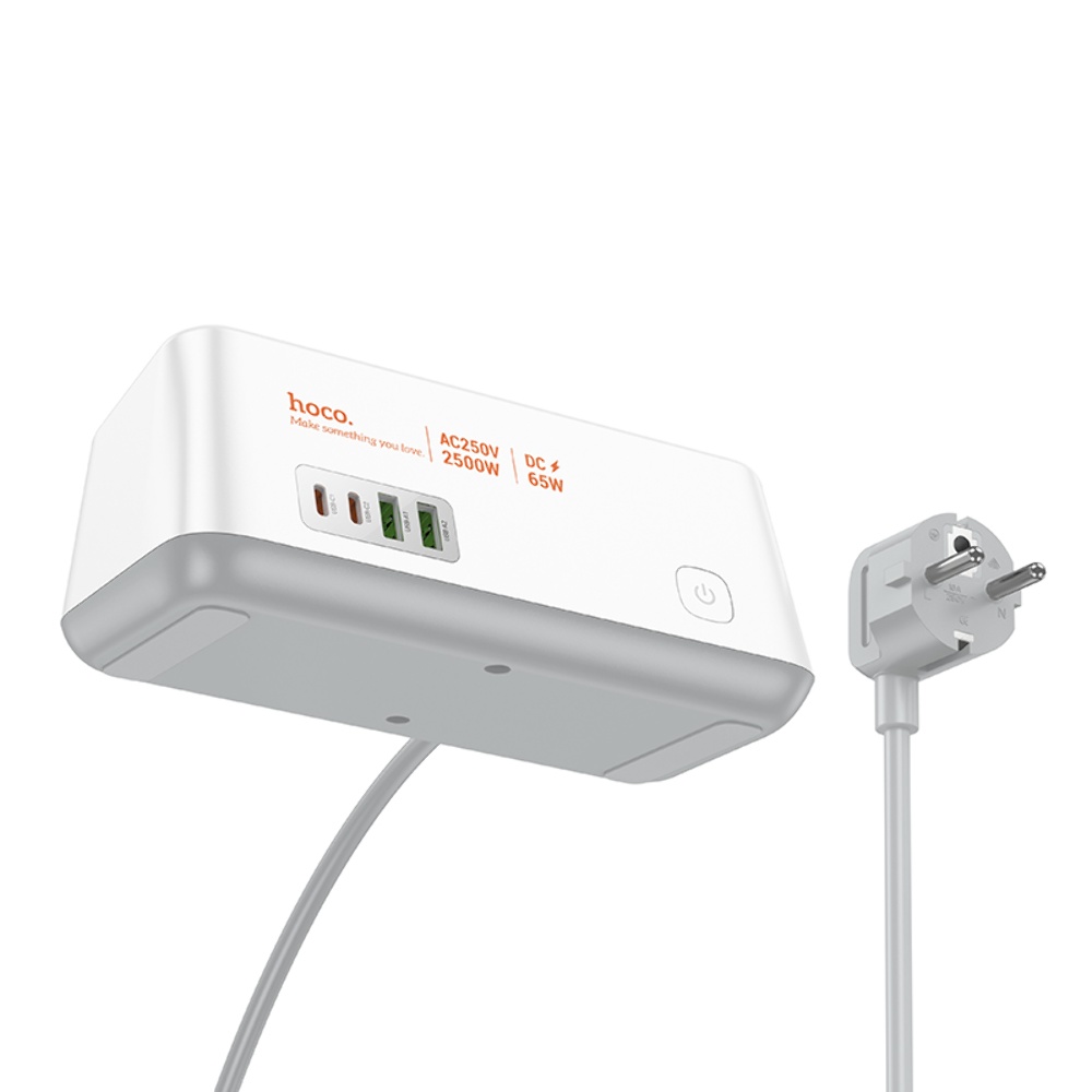 Мережевий зарядний пристрій подовжувач Hoco AC23 2 USB/2 Type-C PD 65W 3 розетки 2m white поєднує функції подовжувача та потужного зарядного пристрою, забезпечуючи зарядку до чотирьох пристроїв та підключення трьох розеток. Білий дизайн та довгий кабель роблять його зручним для дому чи офісу.