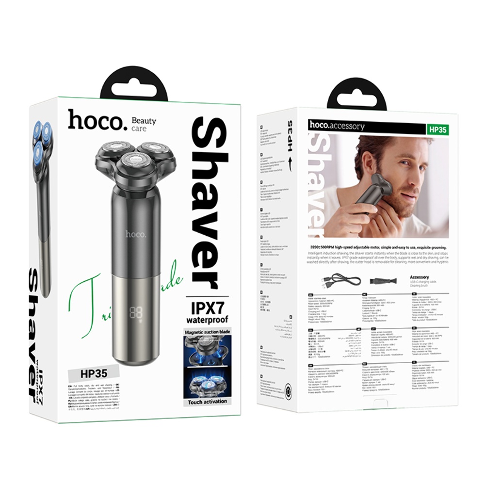 Електробритва Hoco HP35 black – це сучасний пристрій для догляду за чоловічою бородою та вусами. Поєднуючи стильний дизайн і передові технології, ця бритва забезпечить гладке і комфортне гоління на кожен день. Водонепроникність IPX7 дозволяє використовувати її в душі, а швидка зарядка та тривалий час роботи роблять її ідеальним рішенням для чоловіків, які цінують свій час.