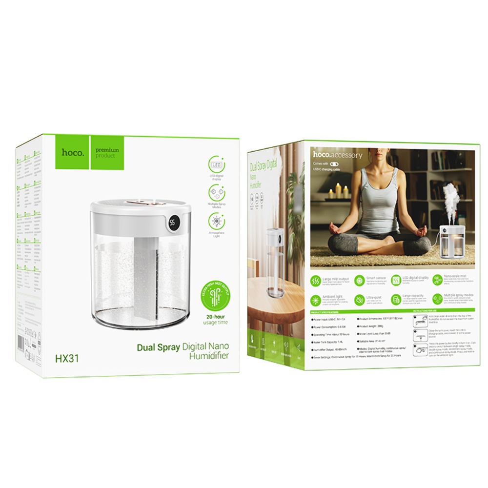 Зволожувач повітря Hoco HX31 з подвійним розпиленням та цифровим дисплеєм white