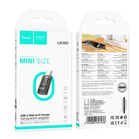 Особливості адаптера перехідника Hoco UA36D Type-C to Lightning black:
