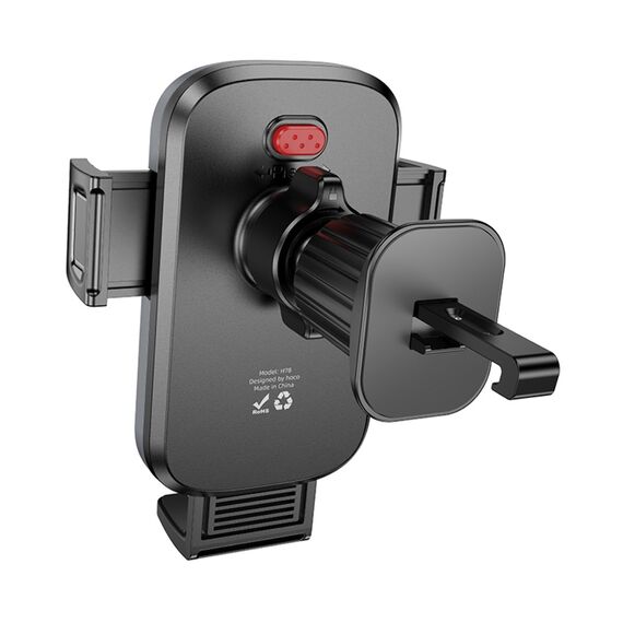 Автотримач Hoco H78 black metal grey забезпечує надійне кріплення смартфона на вентиляційній решітці автомобіля, що дозволяє безпечно використовувати пристрій під час поїздок. Його стильний та компактний дизайн ідеально підходить для комфортного водіння.