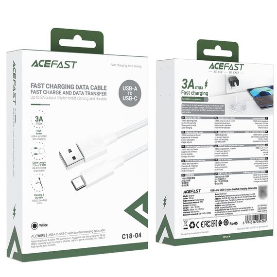 Кабель Acefast C18-04 USB to Type-C PD 1.2m white