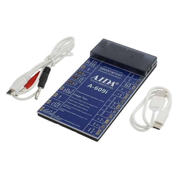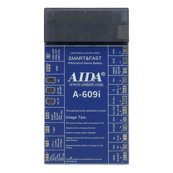Плата активации и зарядки аккумуляторов Aida A-609i цифр. инд. (6G -15 Pro Max, HUA, OPPO, VIVO, MI, SAM, ZTE; кабели Type-C/ USB A/ штеккеры БП)