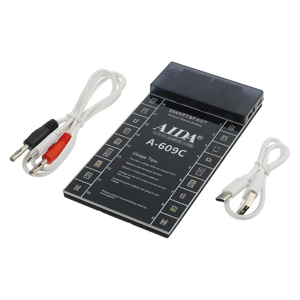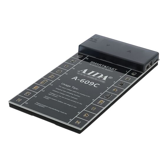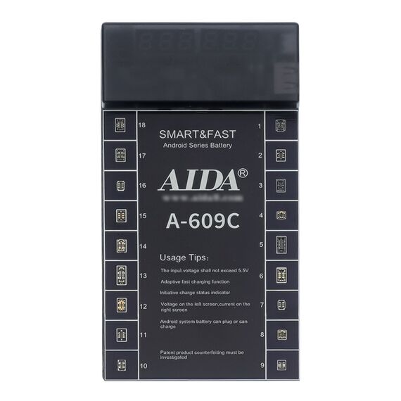 Плата активации и зарядки аккумуляторов Aida A-609C цифр. инд. (18 разъемов для тел. на Android; кабели Type-C/ USB A,Type-C/ штекеры БП)