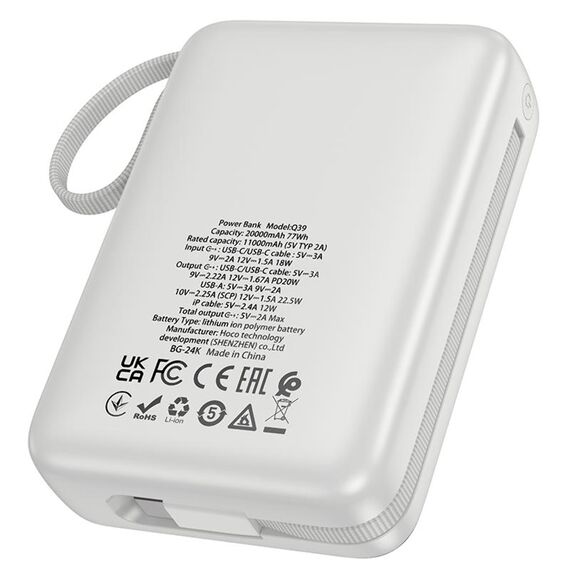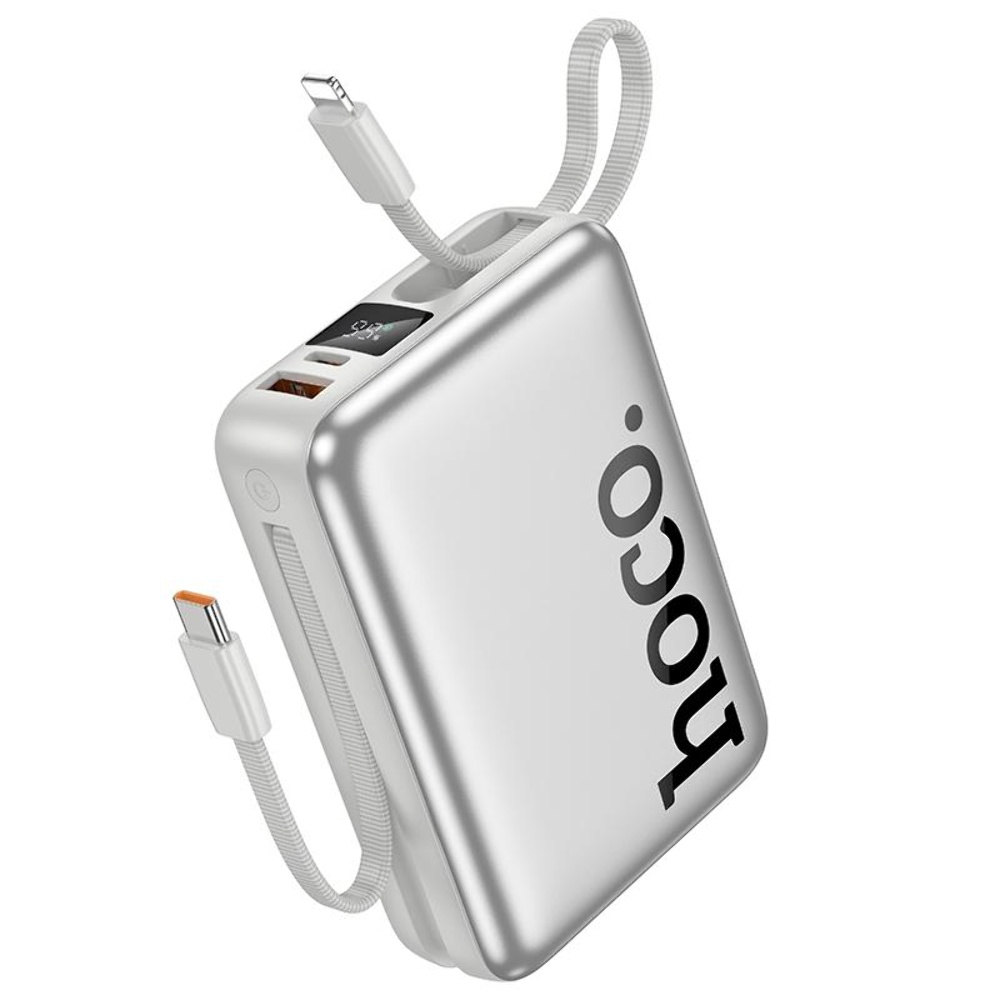 Power bank Hoco Q39 20000mAh 22.5W+PD 20W + кабель 2в1 Type-C/ Lightning silver