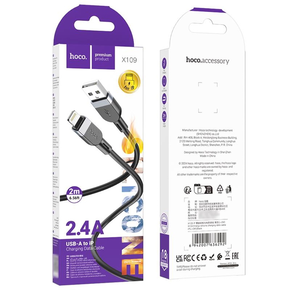 Особливості кабелю Hoco X109 USB to Lightning 2m black: