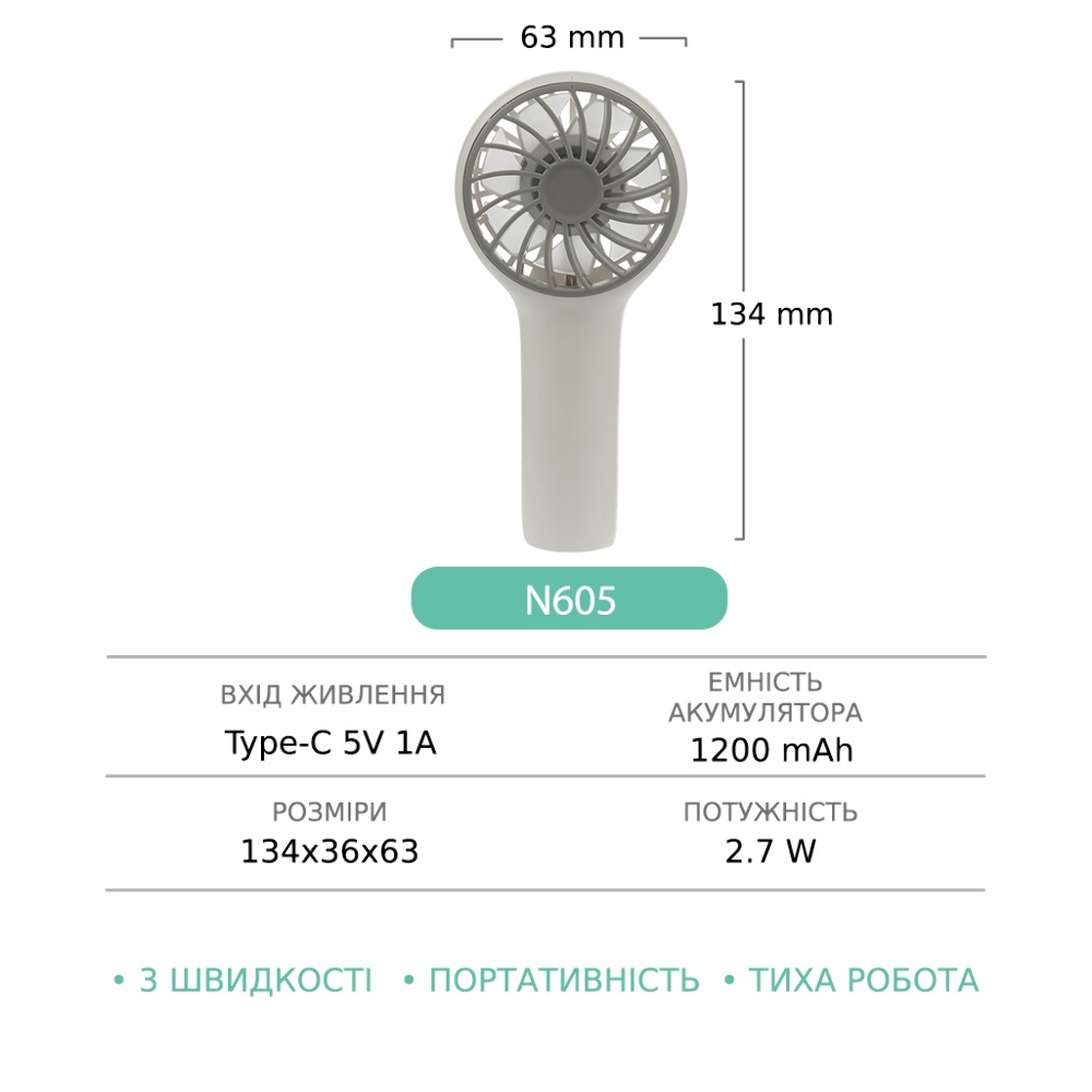 Ручний бездротовий вентилятор GXQC N605 White