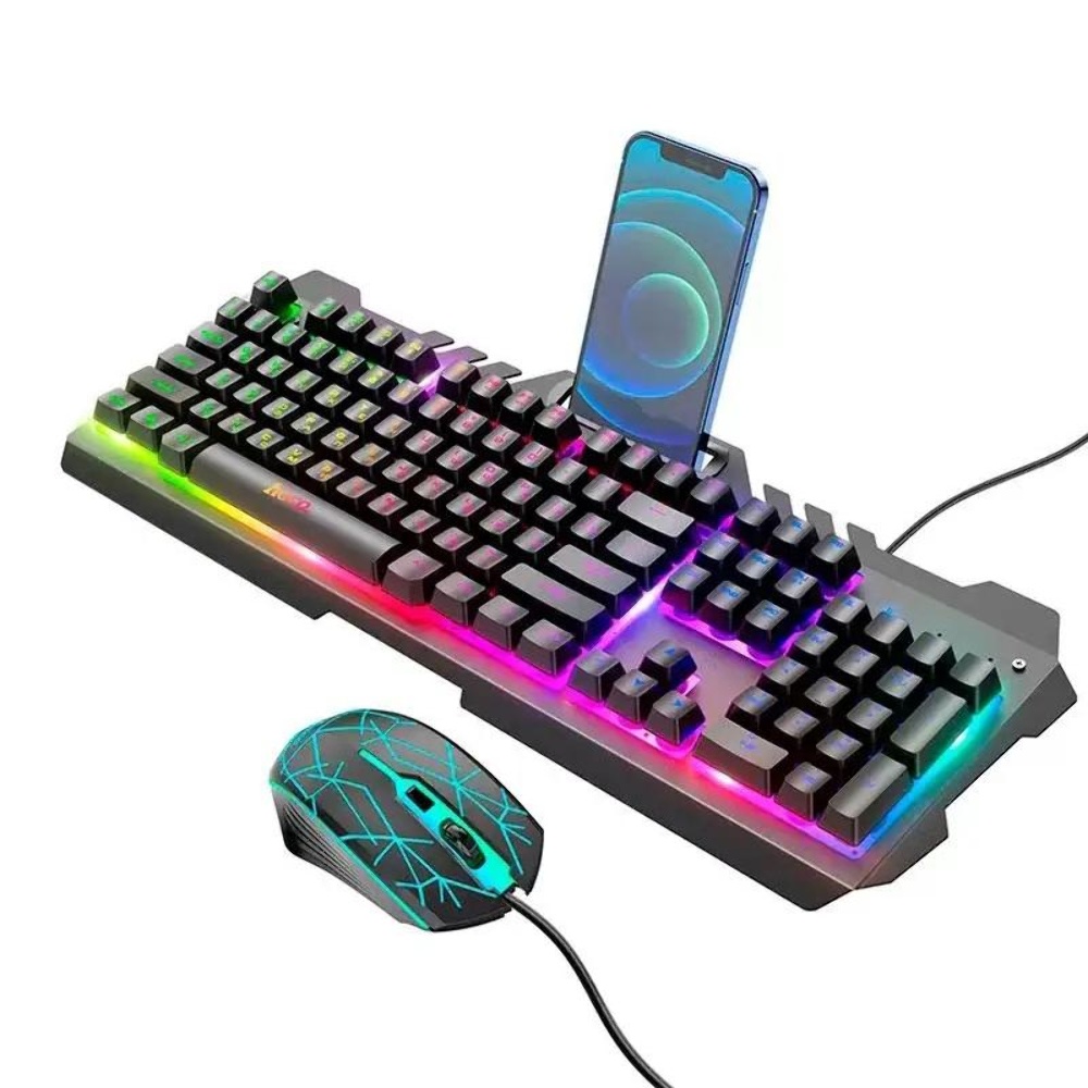 Комплект клавиатура и мышь Hoco DI16 (ENG/ РУС) с RGB подсветкой black