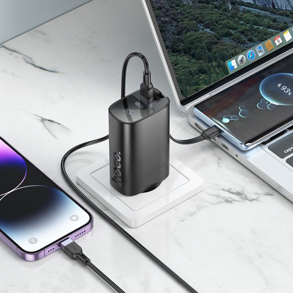 Мережевий зарядний пристрій Hoco J148 із вбудованим Power Bank 5000mAh PD 20W + кабель Type-C black