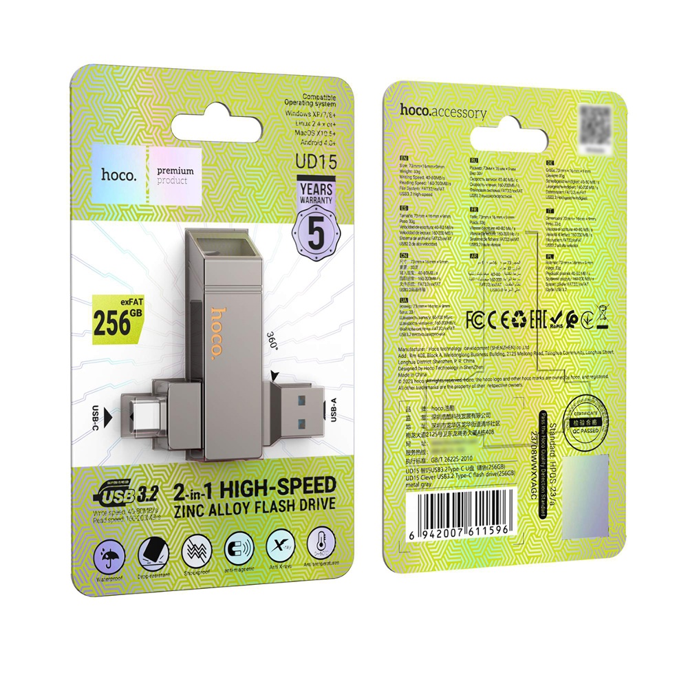 USB флеш накопичувач Hoco UD15 256GB 2 в 1 USB 3.2/ Type-C металевий metal gray